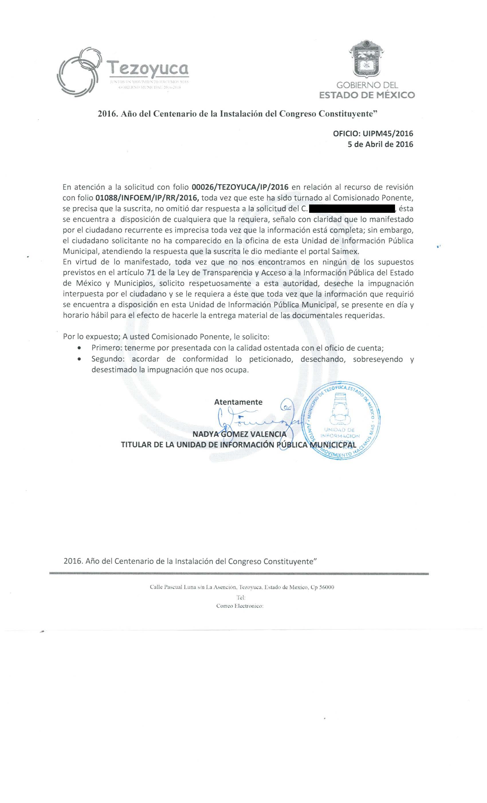 01103/INFOEM/IP/RR/2016